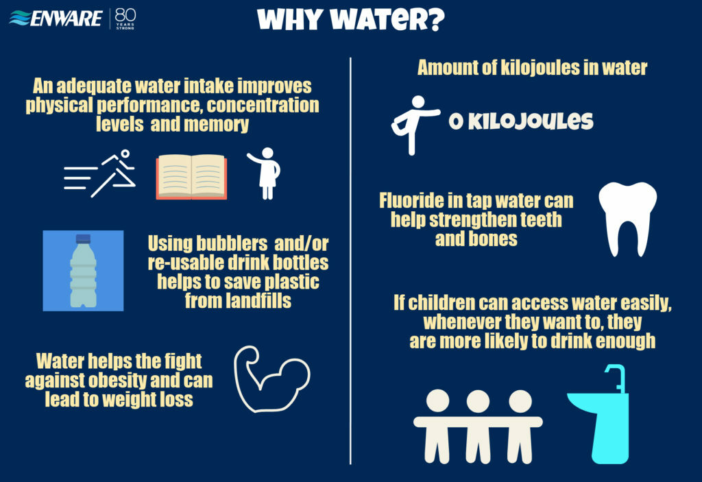 Drinking water instead of sweetened drinks prevents dental problems and the fluoride found in tap water can help keep teeth and bones strong and healthy.