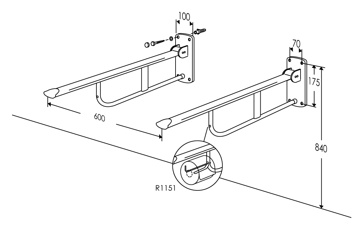 | EP-R1151 | Toilet Support Arm – Fixed Height – Toilet Roll Holder | Add to spec |