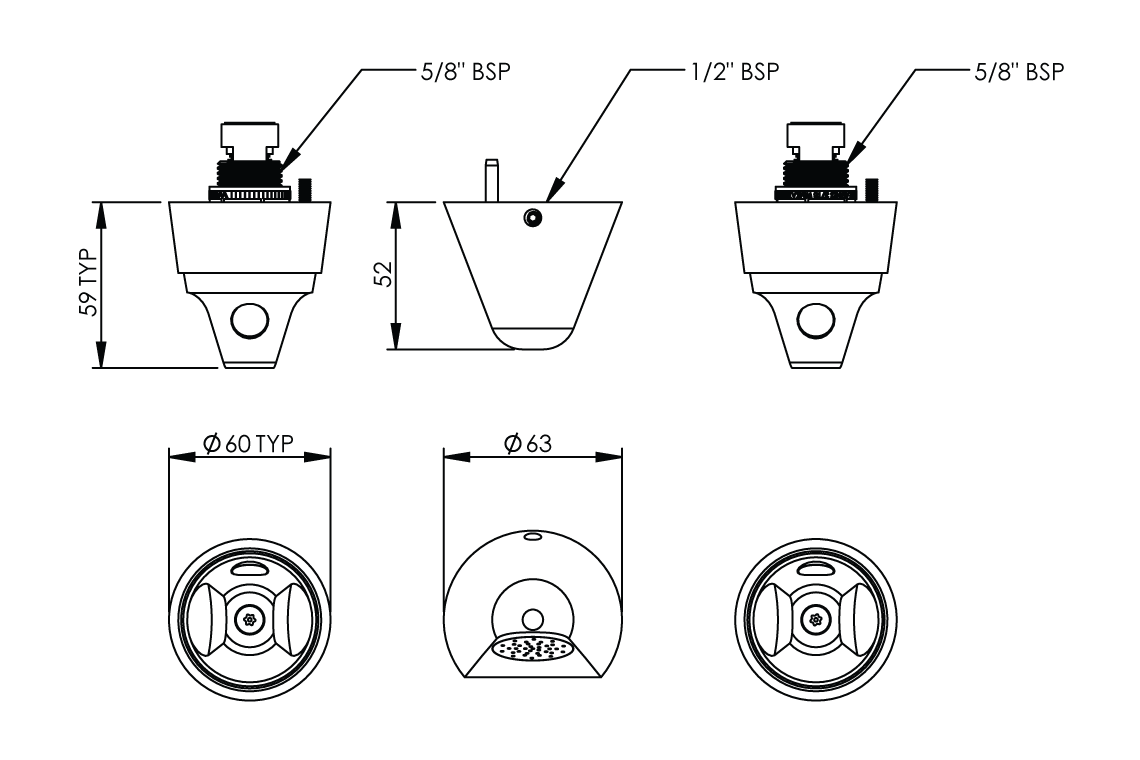 • The DET608 conical handle utilises a ceramic disc quarter turn valve