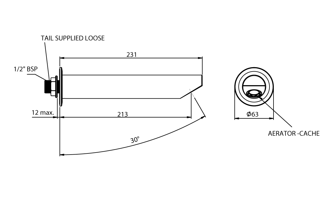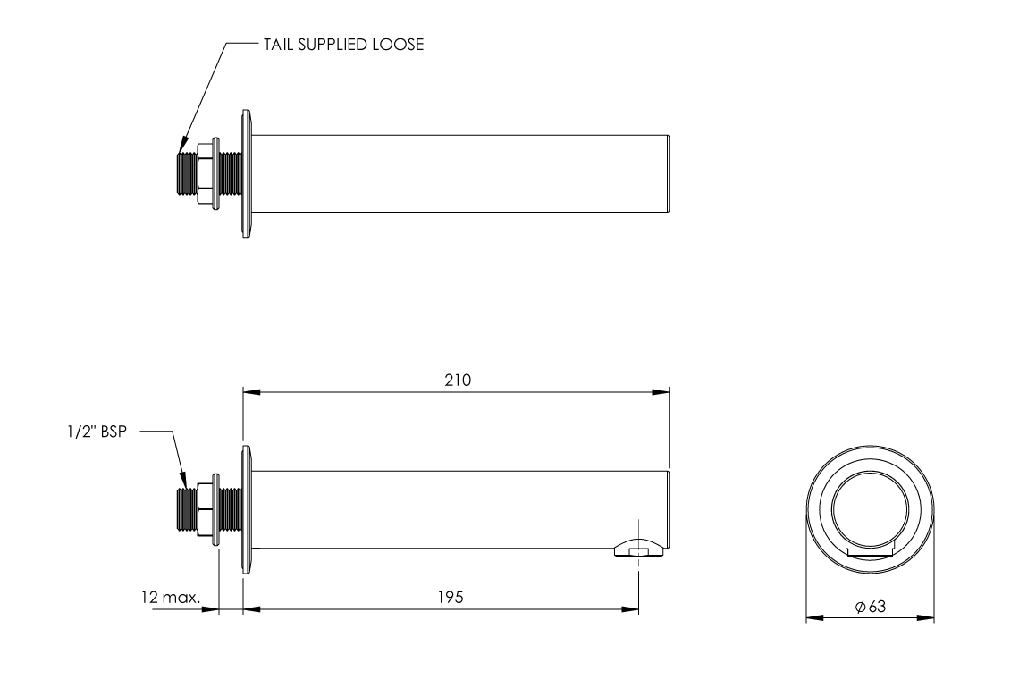 SPC203 Cache Wall Mounted Fixed Bath Spout – Fixed Outlet – 205mm reach Chrome Plating 8L/minute Add to spec