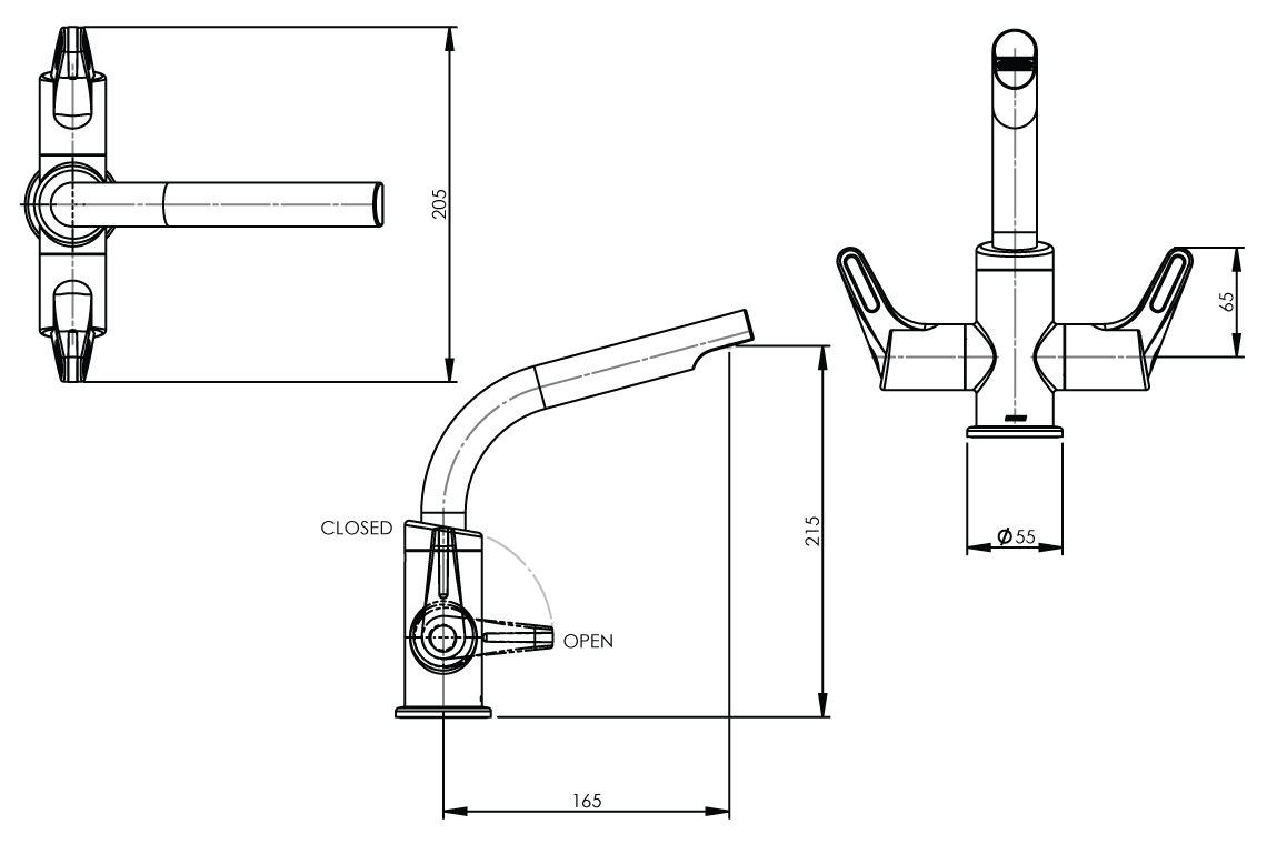Enware Wellbeing Dual Mixer 65mm Levers with 165mm Spout