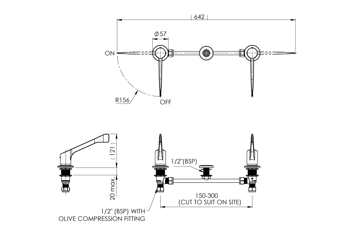 - Quarter-turn, contra-rotating 150mm lever handles