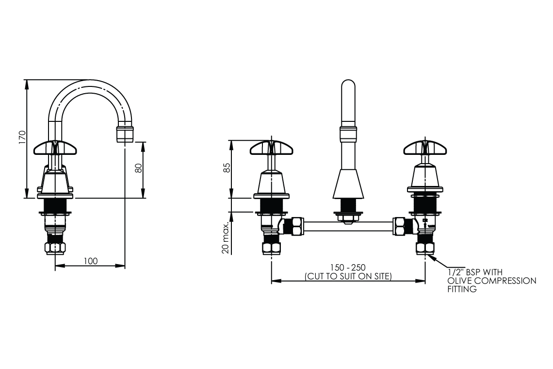 - Adjustable centres of the basin tee allow the set to fit a range of three tap hole basins, sink or bench top