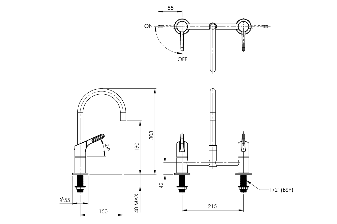 • WELS: 5 Star (5 L/min) laminar flow aerator supplied standard. 6 Star (4 L/min) laminar flow aerator available on request - specify when ordering
