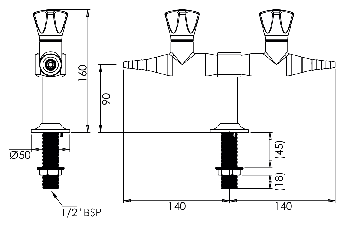 Slimline Two Way 180 Degree Bench Mounted Laboratory Tap