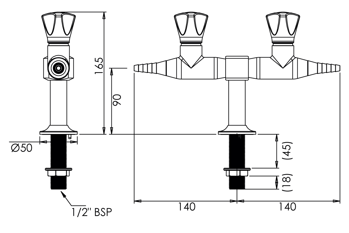 Slimline Two Way 180 Degree Bench Mounted Laboratory Tap