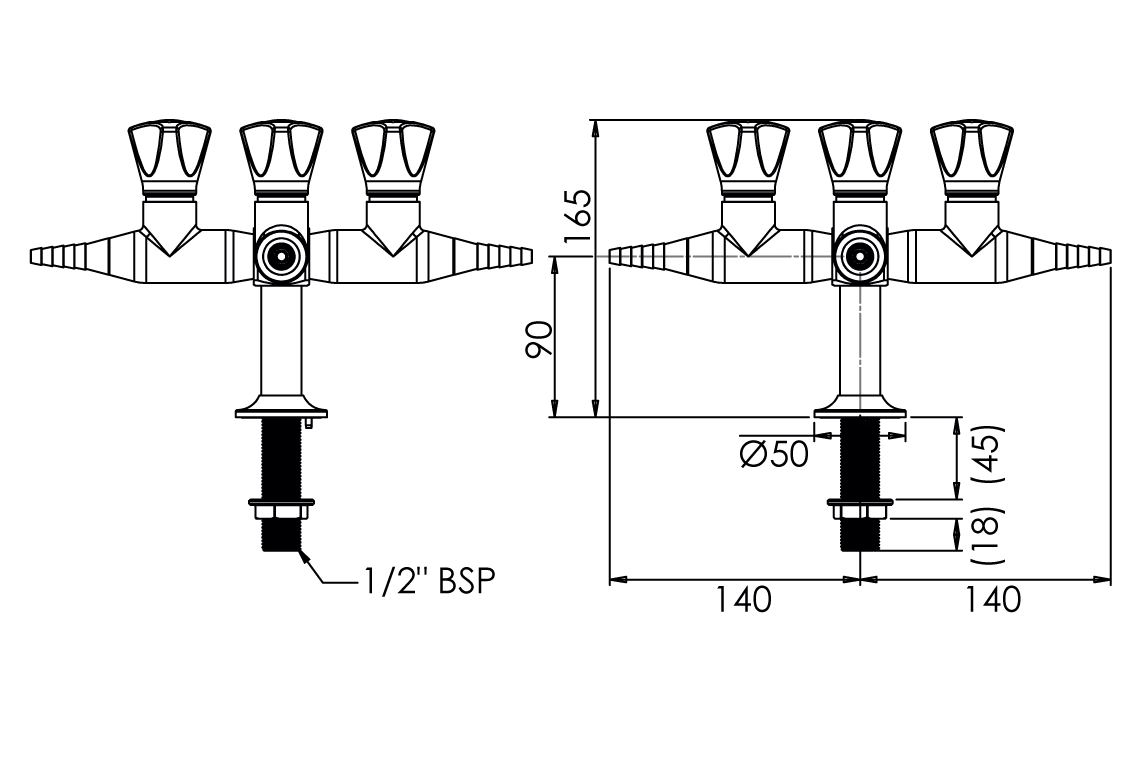 Slimline 4 Way Bench Mounted Laboratory Tap (Burning Gases)