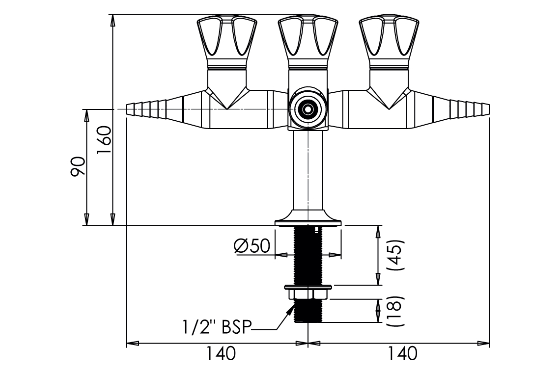 Slimline 4 Way Bench Mounted Laboratory Tap (Dry Media)