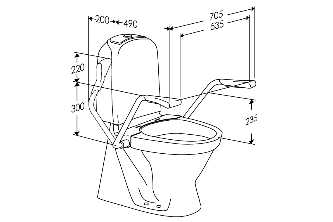 The support arms have padded handles for hand and arm comfort and can be folded individually. They are suitable for people who need slight support when using the toilet. For wheelchair transfers wall-mounted support arms are recommended.
