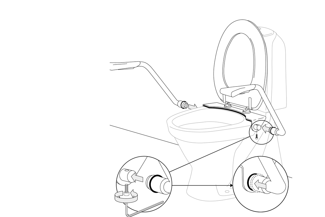 Support arm sytem which can be easily and quickly mounted onto the toilet.