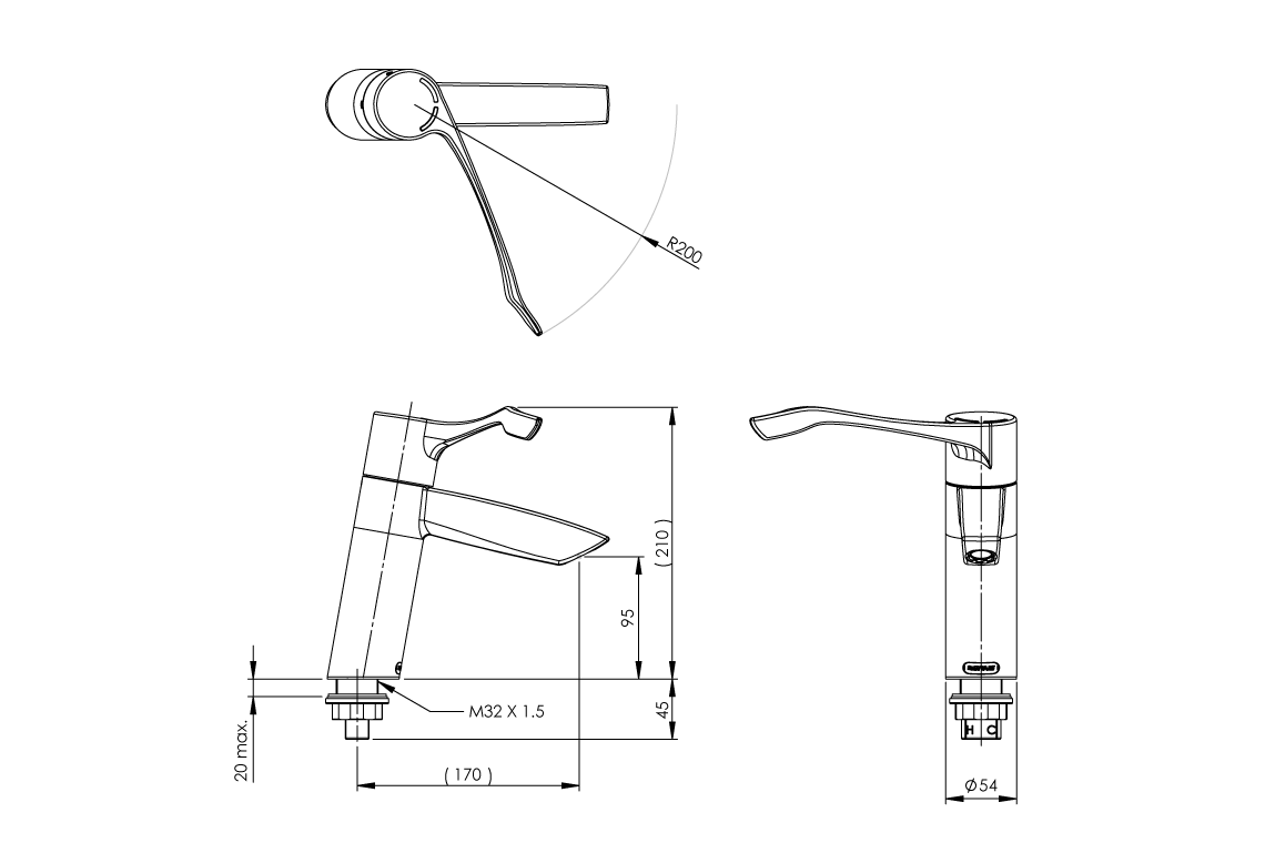 • Longer lever, designed for elbow control in health applications or for easier use in accessible applications
